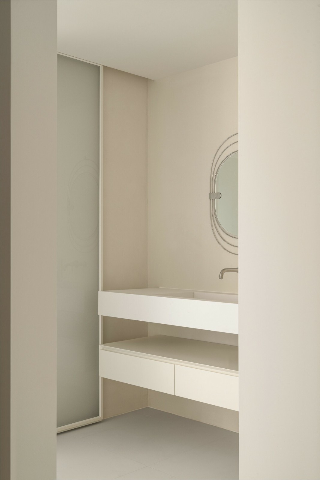 设计中采光可以很大程度影响到家里的整体感觉,暗的光的神秘而隐邃,明的光则清澈而温柔,我们永远好奇,光能为家里带来多少故事和灵动,正如而这套作品想表述的就是,这不是一个短暂的冰冷的用材料堆砌的场所,我们想栖身在充满光,如家和人之间亲密关系,既充满诗意和亲情。