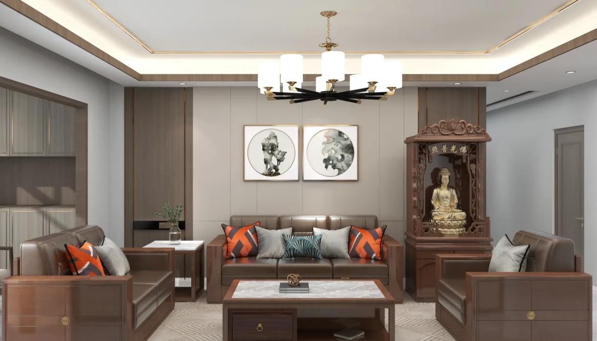 厅在原有现代结构的基础上,将东方元素做了巧妙地融入,让你感受到中式设计带来的大气