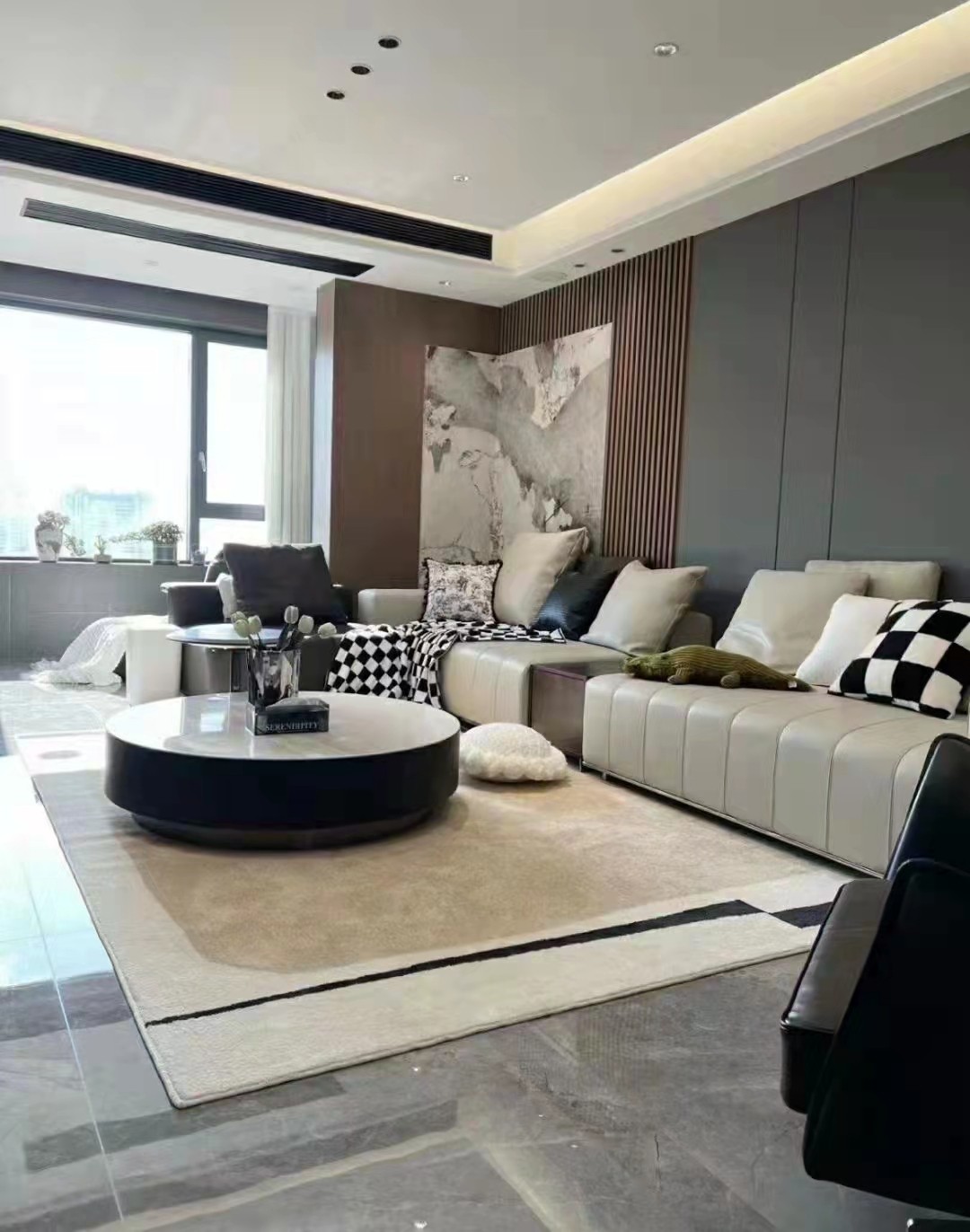 轻奢风格一般会选用象牙白、黑色及碳灰色,来演绎一种低调的奢华,令空间质感更为饱满。