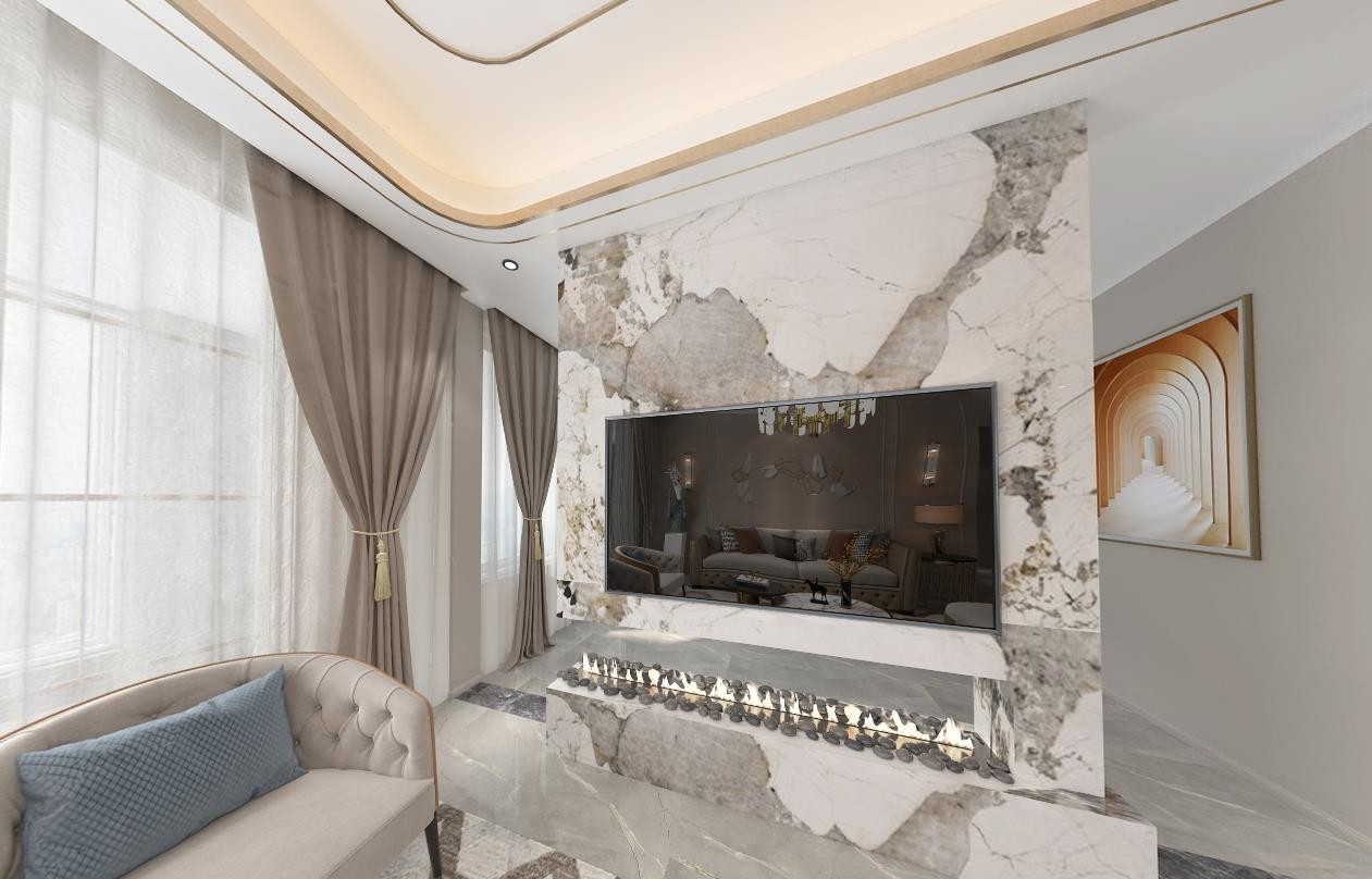光影则细腻的在空间内漫游随着阴晴,日夜各有姿态,自然气质的大理石电视背景为空间展开内敛唯美的慢生活。