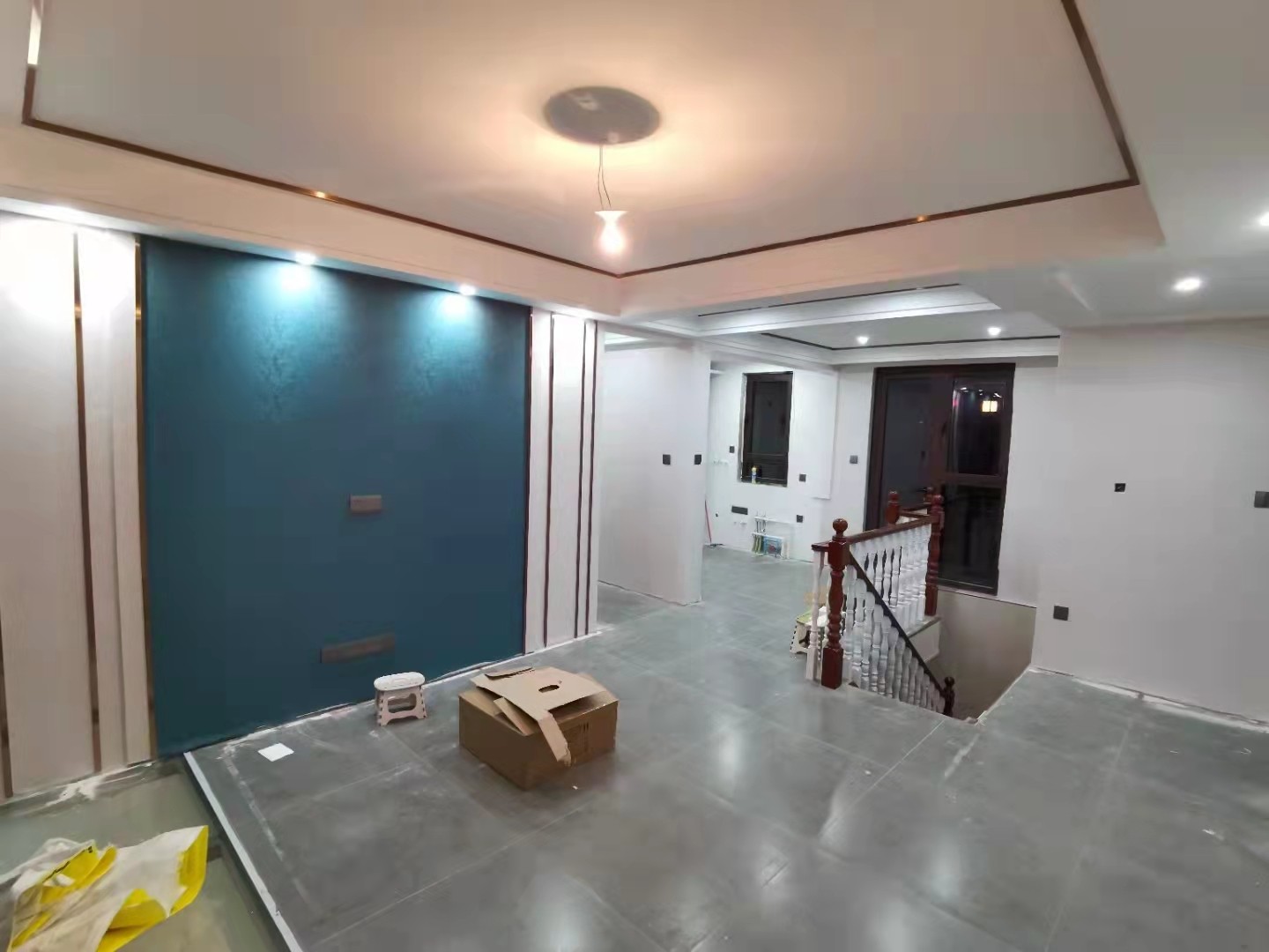 整体轻奢风格,实木楼梯扶手,搭配金色金属线条。