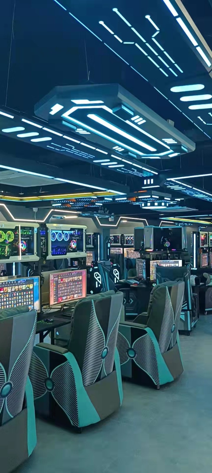 利用线条勾勒和灯光的反射,营造电竞氛围