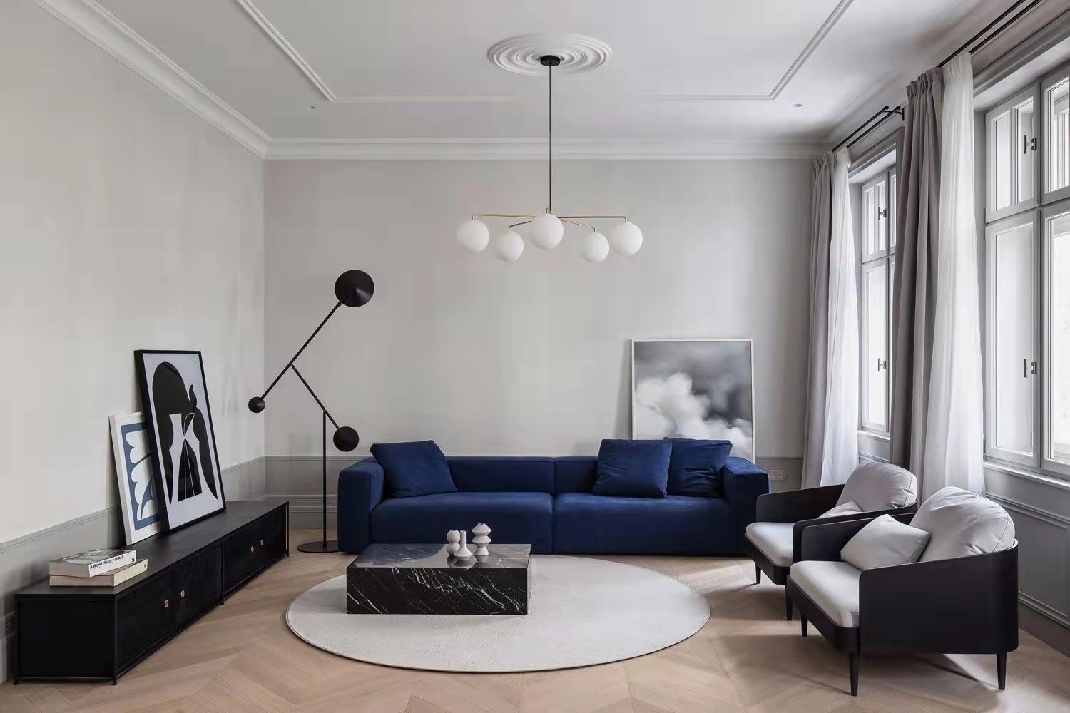 极简风格,吊顶用石膏线条划分,保持房高不变!