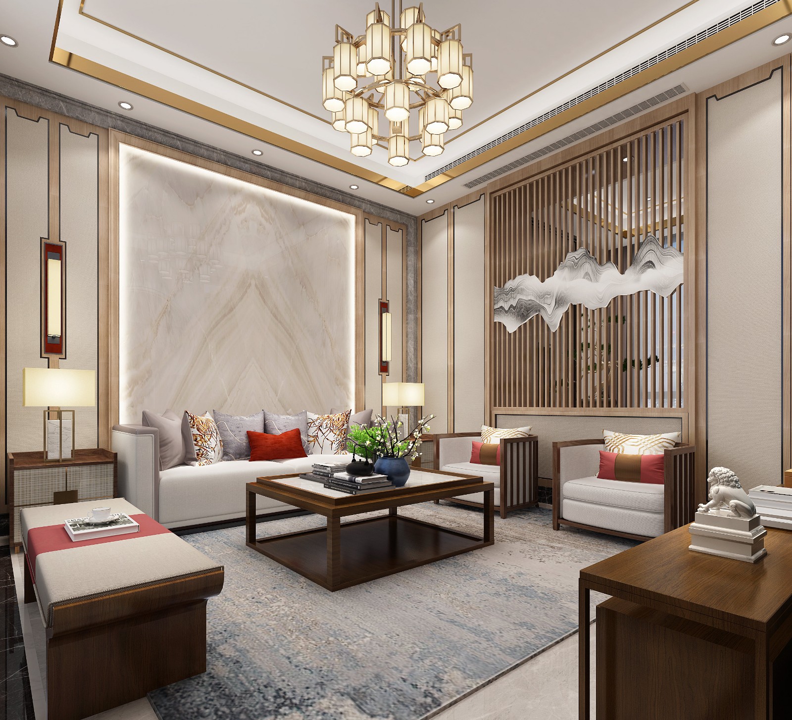 本案业主是艺术从业者,喜欢有禅意的中式风格,因此最终定为现代新中式风格。通过现代空间设计手法,经典的中式元素融合充满古典氛围。