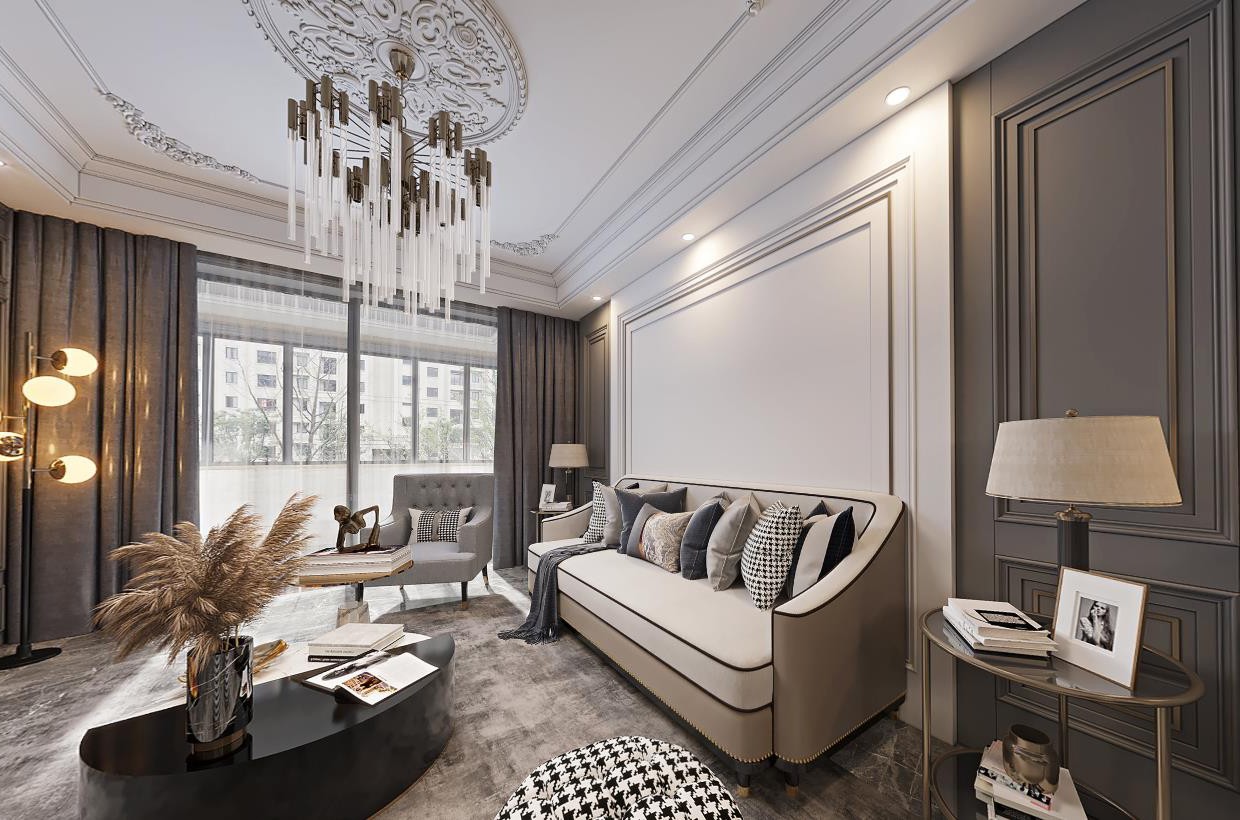 本案为一个清新感十足的轻奢简欧家居空间。 咖灰色系给人一种淡泊、优雅的感觉,浅浅淡淡一种平和的美感,让人瞬间放松下来。