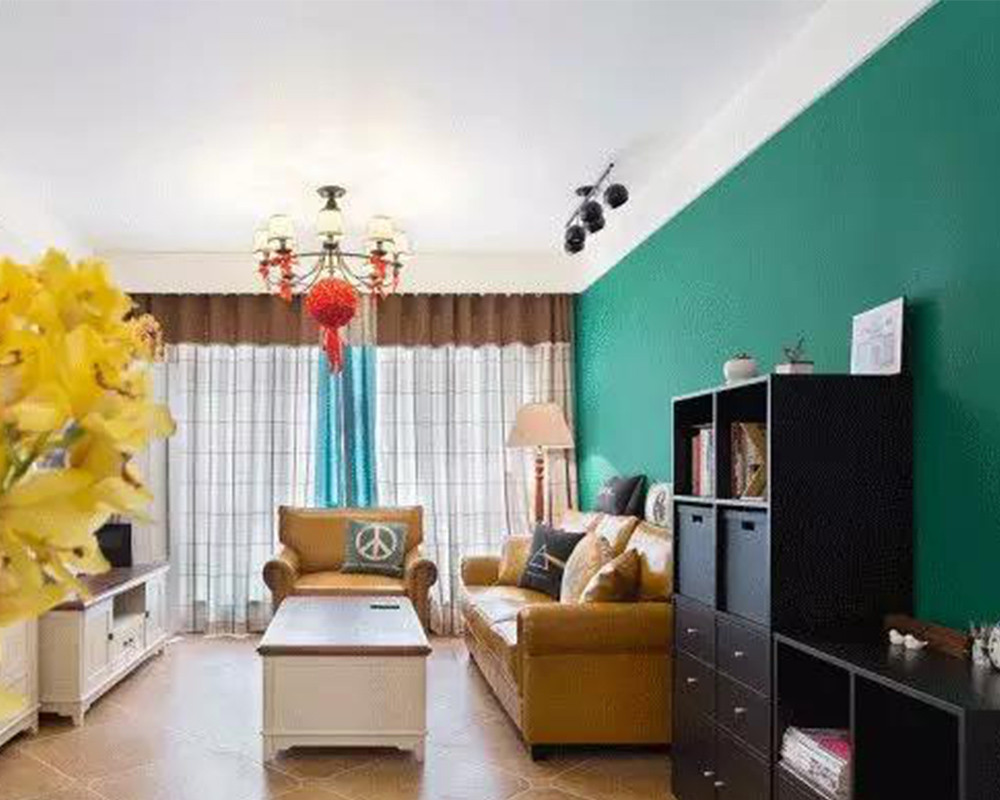 ***的配色会让房间质感提高好几个档次哦。墨绿色干净大胆,很有冲击力,无可厚非地成为客厅的亮点。