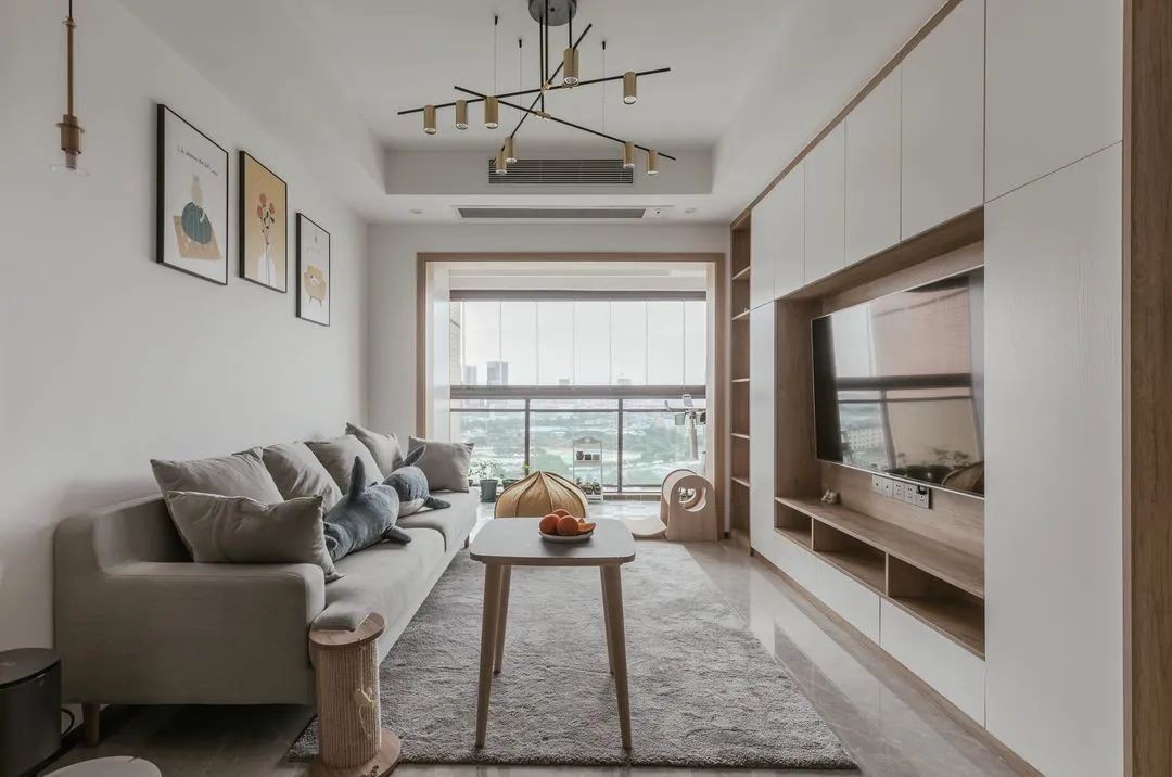 装修上没有做很大改动,将客厅阳台打通,同步在阳台定制储物柜,以提高居家收纳能力。除了主卧之外,其他房间都采用定制设计,既增加储物收纳,又提高空间利用率。