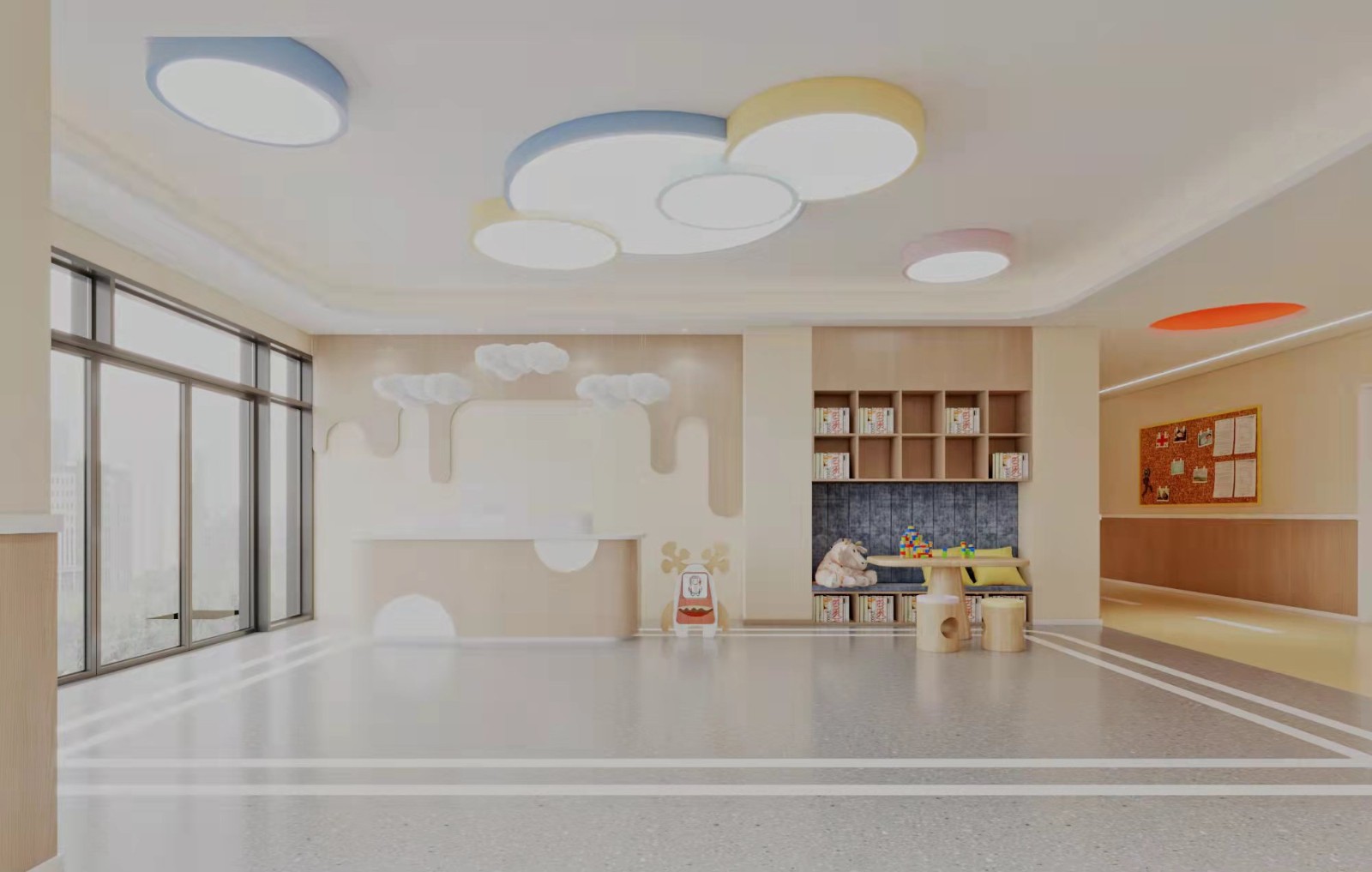 生趣,活泼,可爱设计风格,幼儿们日常活动空间。