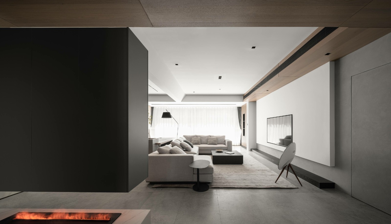 原户型很好 在空间上 希望通过块体的面 简单的材质 木与火 黑与白 冷与暖 相互去融合