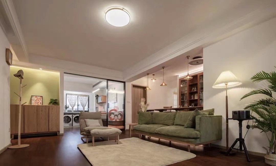 客厅取消传统电视机,天花预留升降投影幕布的位置,升级观影效果