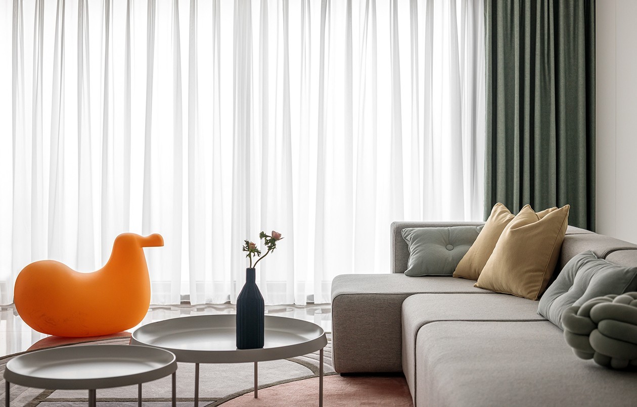 客厅与传统设计格局不同,并没有设置电视,主体调性偏于自然,让宝宝在一个自然、放松的环境中快乐成长。