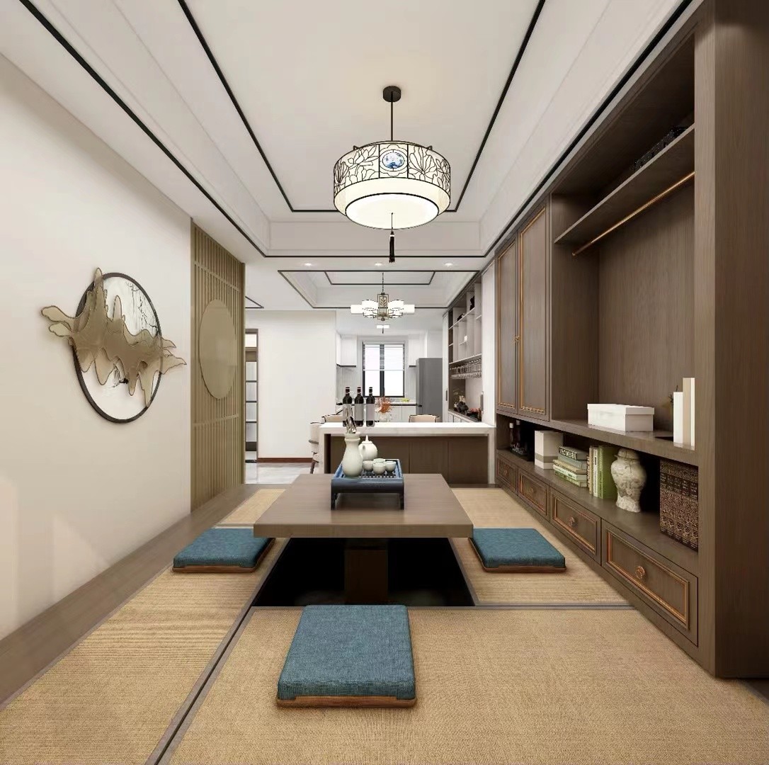 大客厅 开放式厨房 古典中式气息 富有禅意