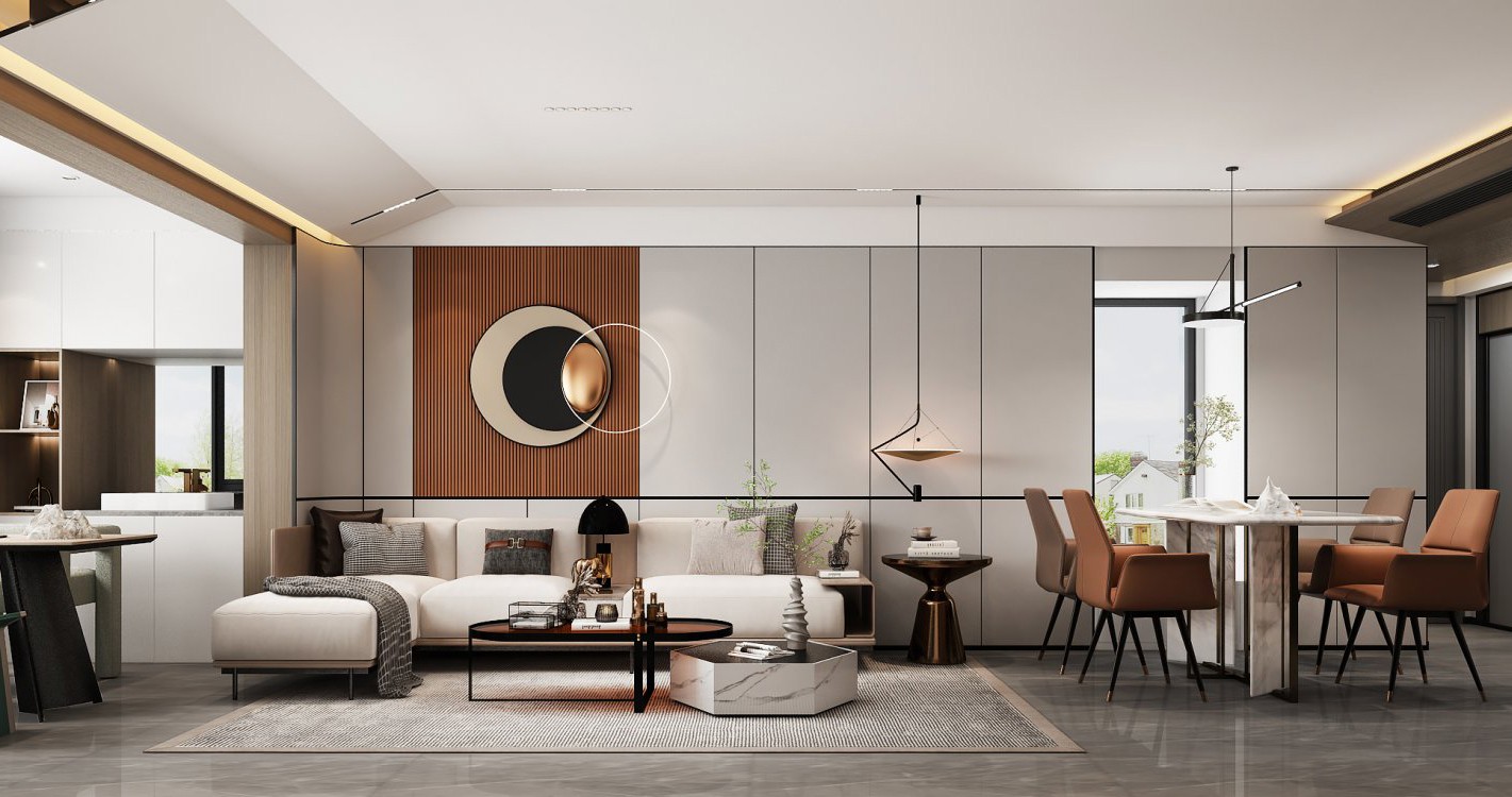 客厅与餐厅在同一空间内,做的开放式的设计,让家人间的沟通变得更简单畅通。客厅做的无主灯的设计,让空间在视觉上更开阔。