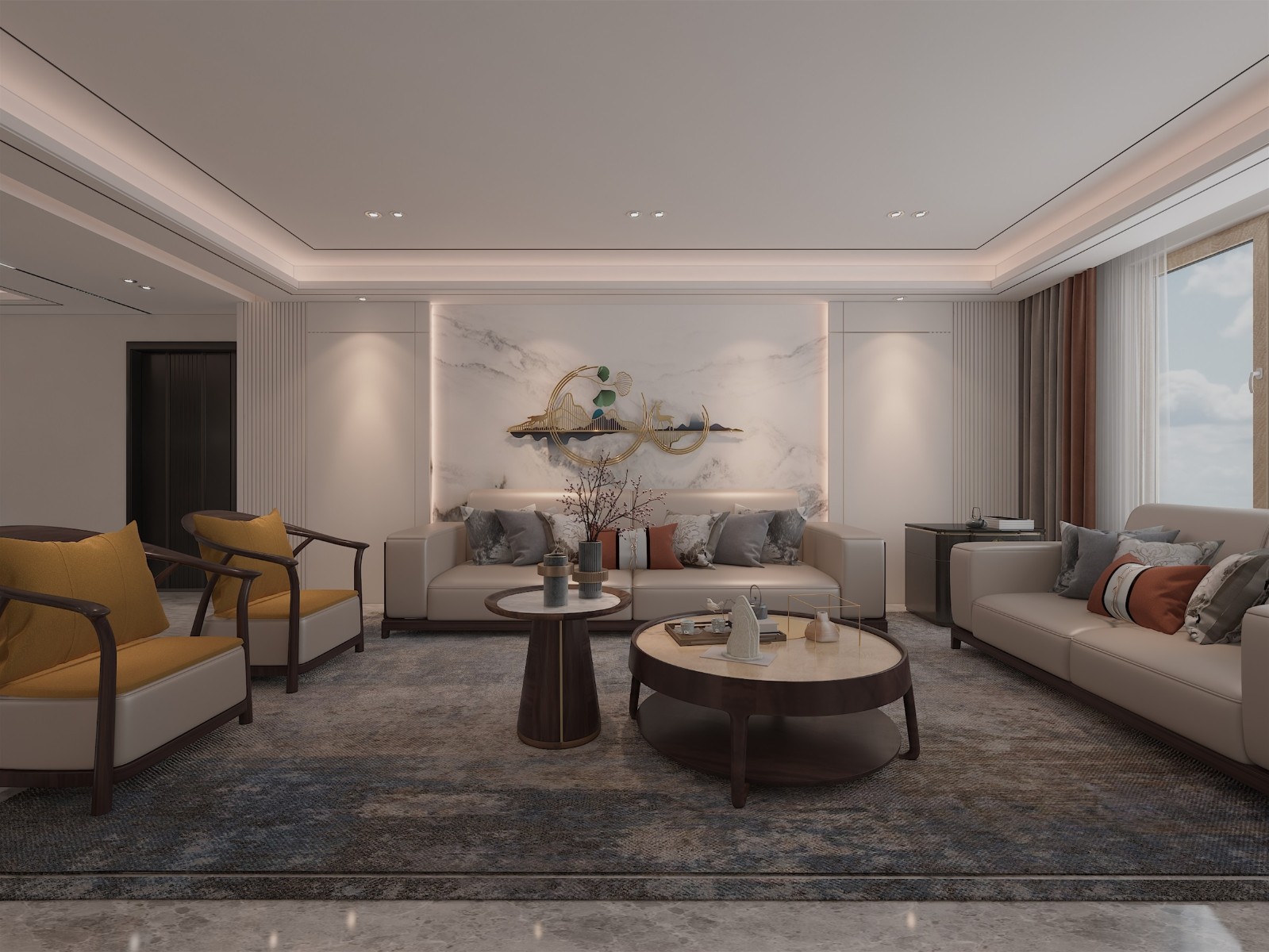 电视背景一抹素雅的色彩,几笔简练的线条,用最简洁的方式勾勒出悠远意境,铺陈出别有风致的现代中式美学。
