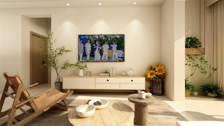 原木风格为基础,设计出一套素朴简练,毫无拘束的自然之家。在角落的绿植带来几分生机和活力,充足的自然采光让客厅显得宽敞明亮。