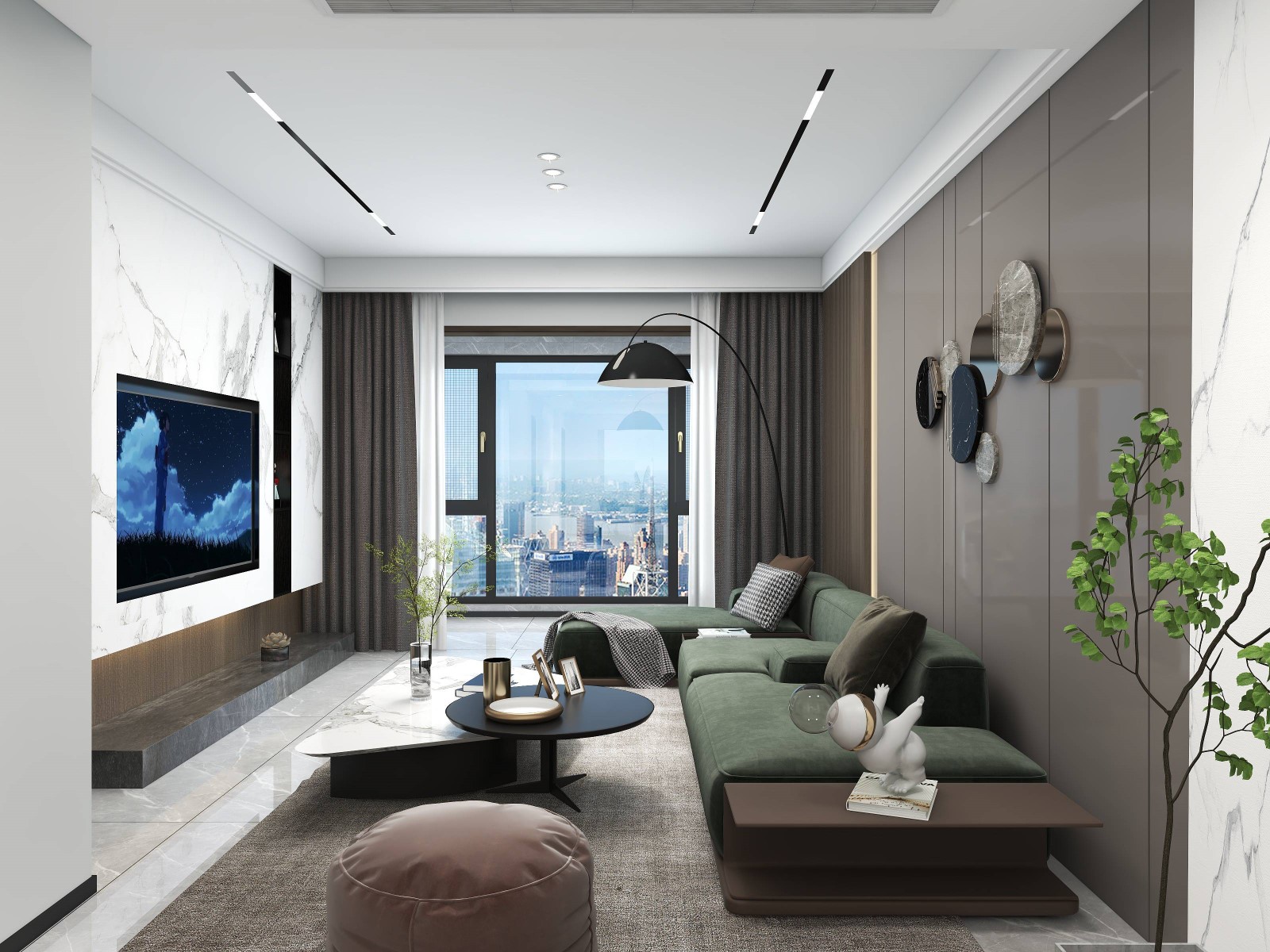 客厅采用无主灯设计,使得整个空间更加挑高和宽敞。