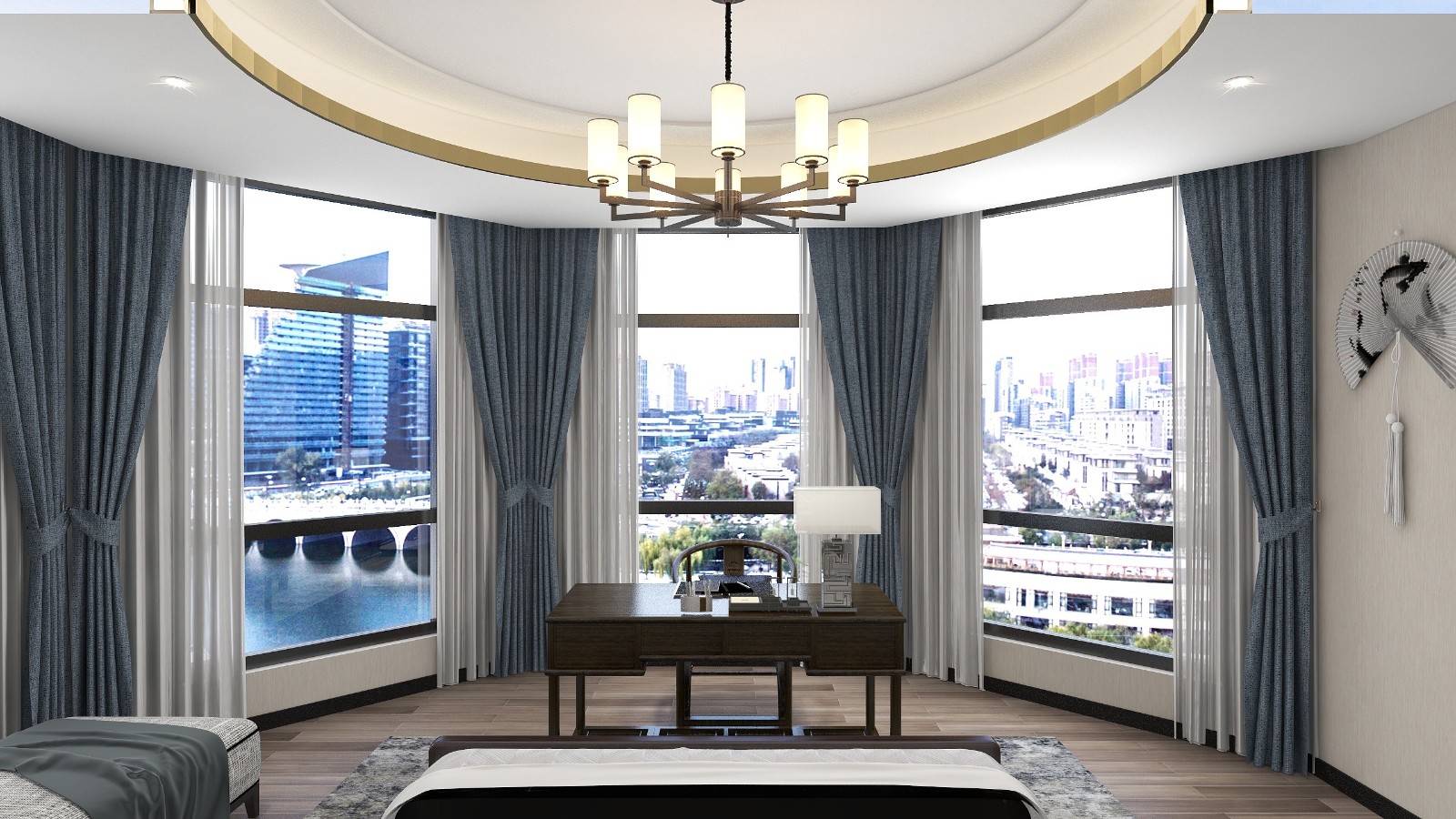 卧室的床尾摆放了一张木艺书桌,很有书香气息。