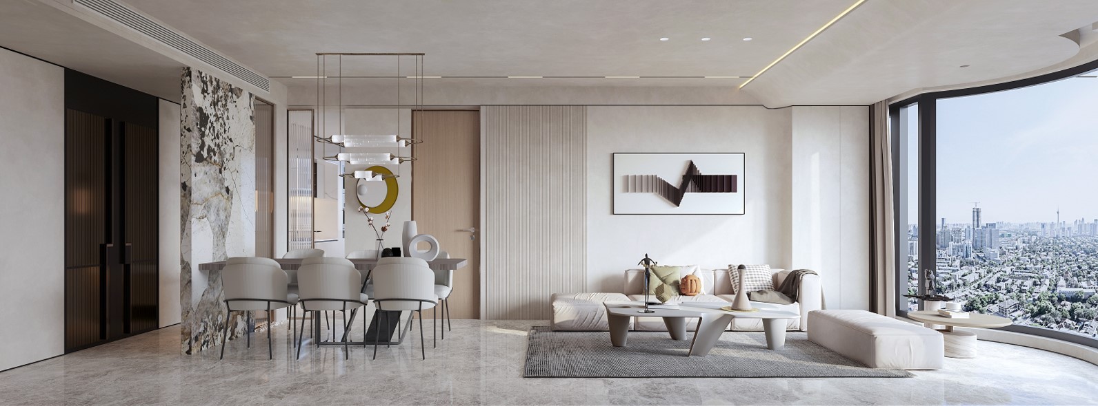 现代极简,白色主意,奢石的运用点亮空间