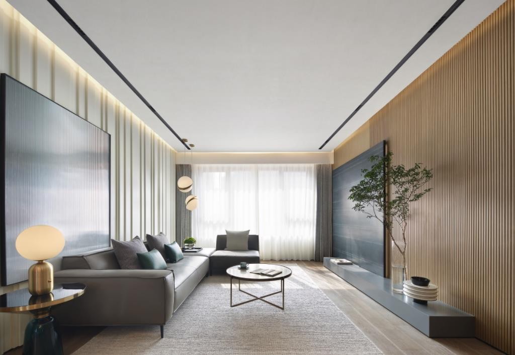 为避免零碎杂乱,木百叶由餐厅延伸至客厅,配合恰当的暗门处理,强调纯粹、整体性的设计思维