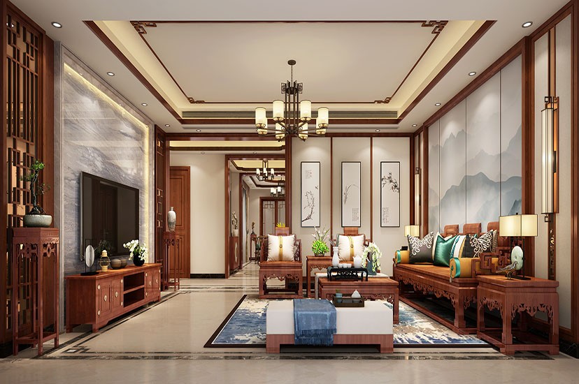 客厅是新中式风格最集中体现的地方,也是最凸显屋主品味的空间,米白的色调搭配中式风格的家具,屏风上的挂画是诉不尽的诗意。