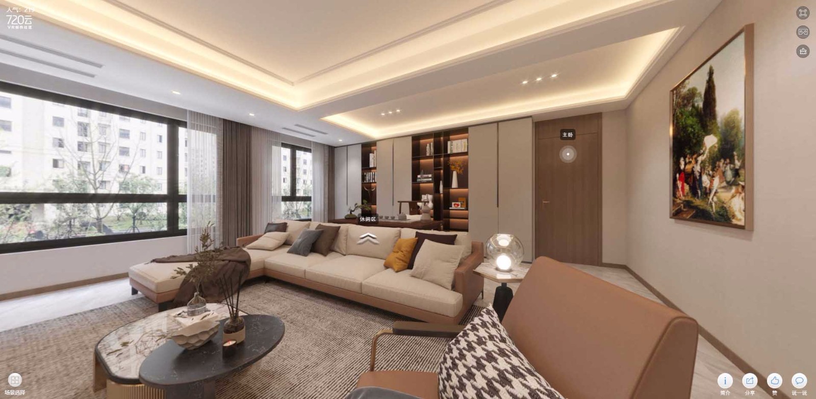 客厅灯光氛围感极强,木色的家具还原了生活的本质,客厅兼具书房与休闲为一体。简单现代轻奢装饰风格的主要特征之一是装饰设计以高品质和简约为基础。设计简洁大方,时尚,前卫,优雅,给人温暖舒适的感觉。适应每个人都熟悉的现代轻奢风格