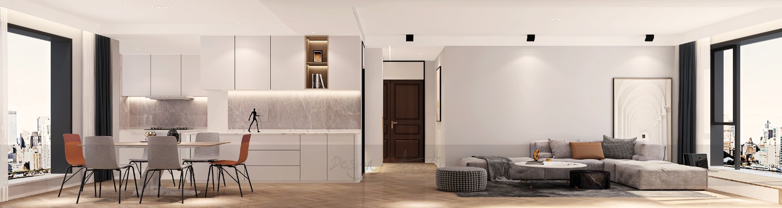 整体装修风格为现代简约风格,整体色调以暖色为主题,墙面采用的嘉宝莉雅晶石这款暖灰色漆作为墙面的主颜色,整体局部用深色作为点缀,用无主灯设计手法作为整个房屋的光源设计,这样略显***。