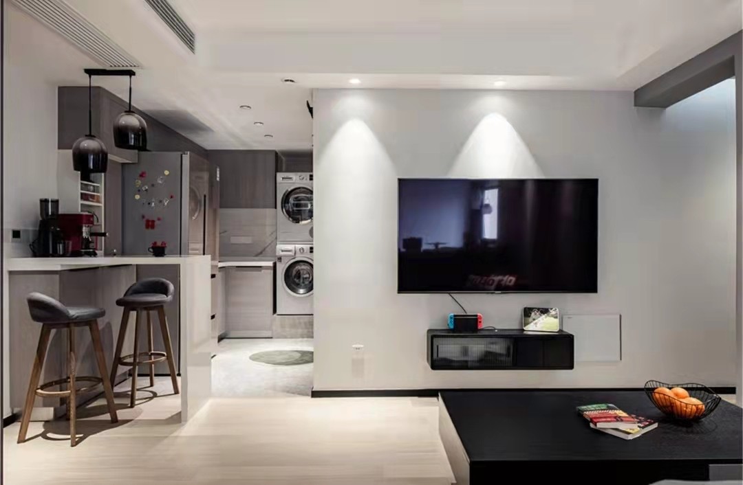 本案例是一套老房整体翻新,以黑白为主要的现代风格,以半包为主,主材及软装客户自购。