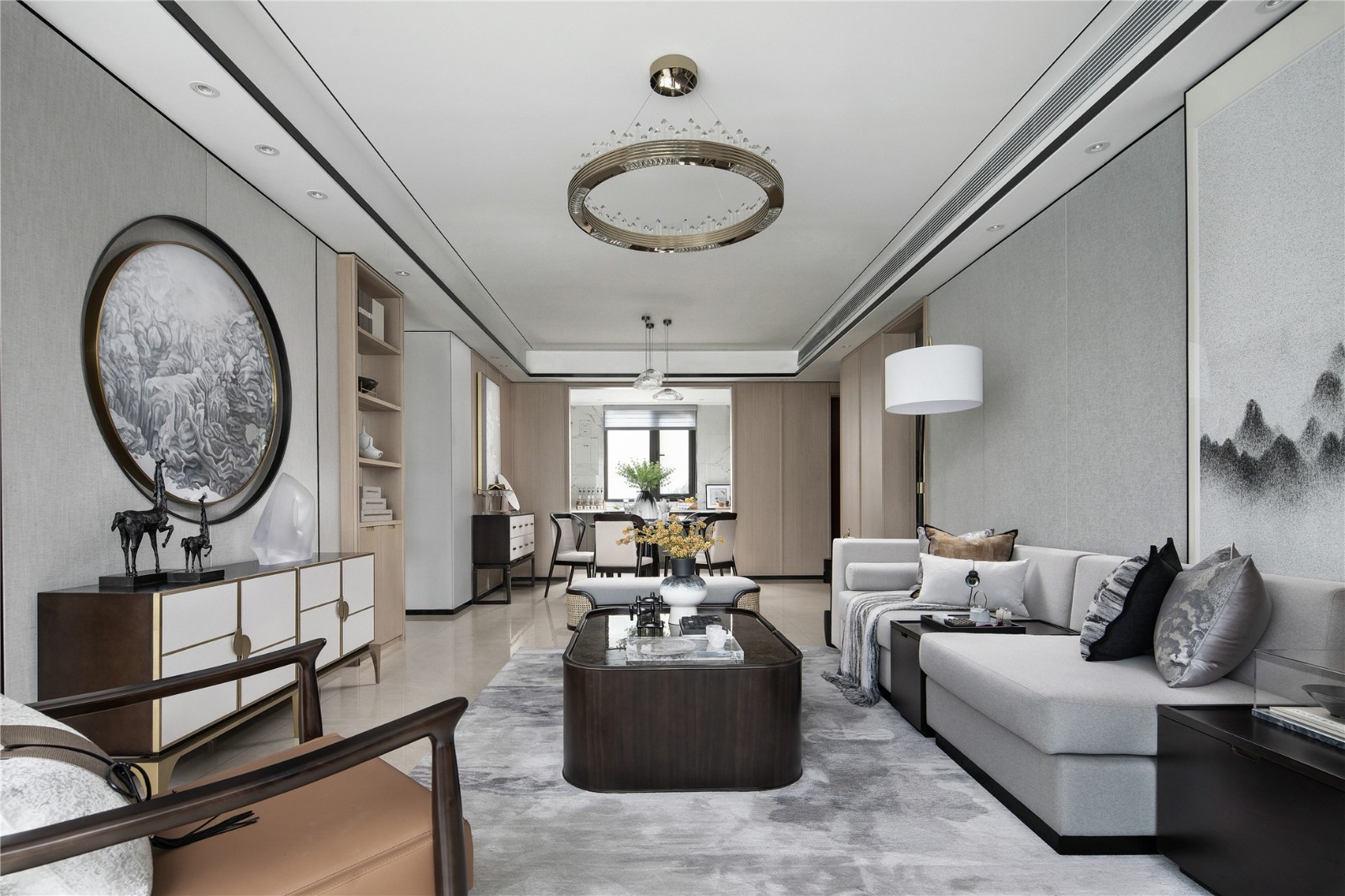 水墨之境可洞见物象与心境的微妙关系。于是设计便同山水的清灵,同中式的风雅,演绎一处惬意文雅的生活场所。