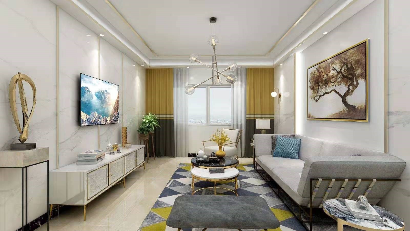 三室两厅轻奢风格,户型方正,采光好
