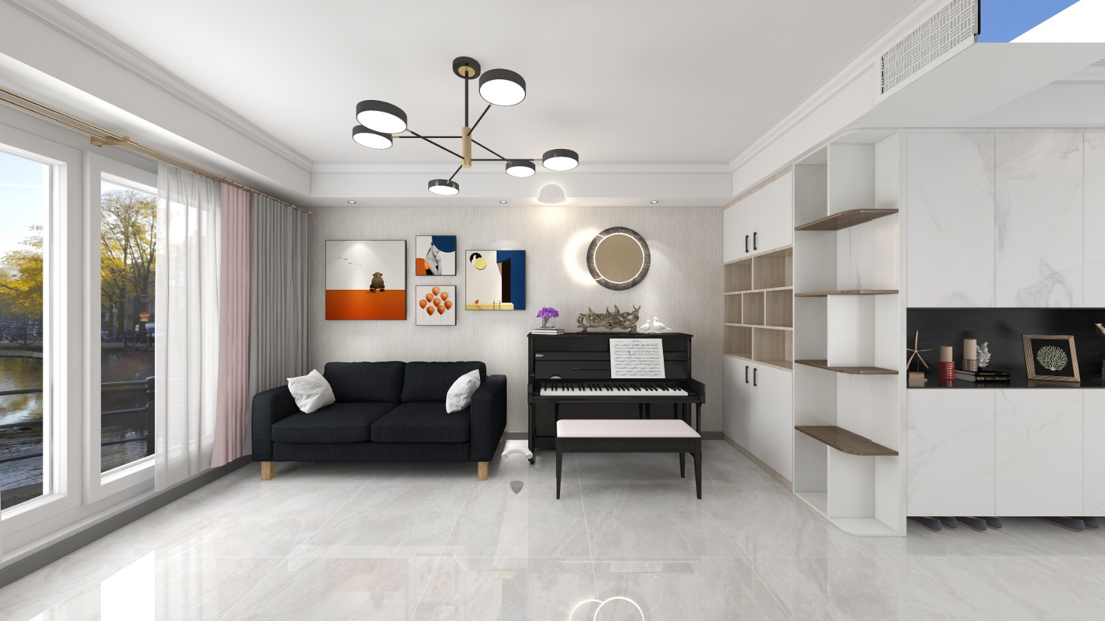 此户型为3居室,夫妻和两个孩子,客厅以学习为主,卫生间干湿分离,有学钢琴的区域