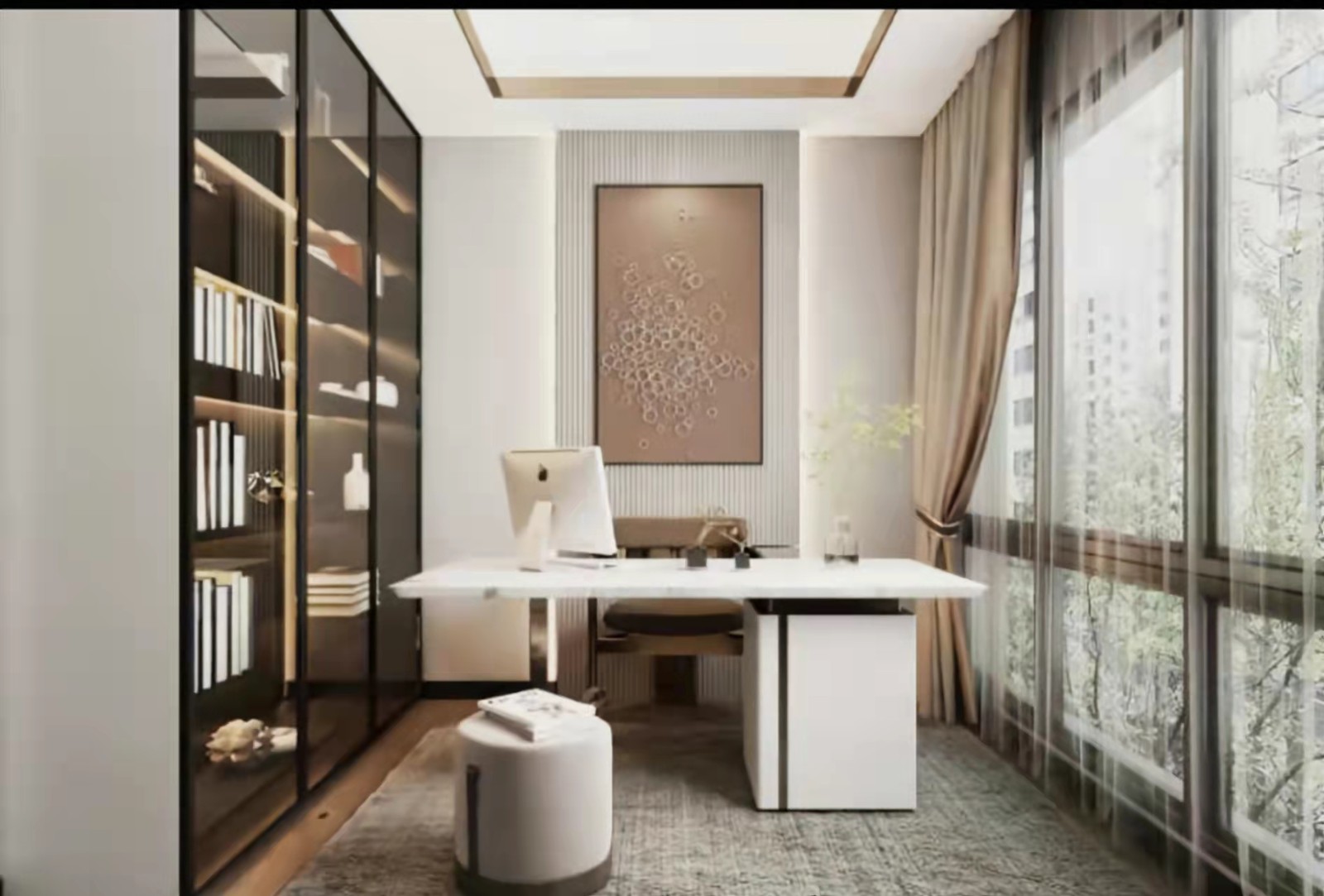 轻奢风格通过一些材料装饰,突显空间的奢华感