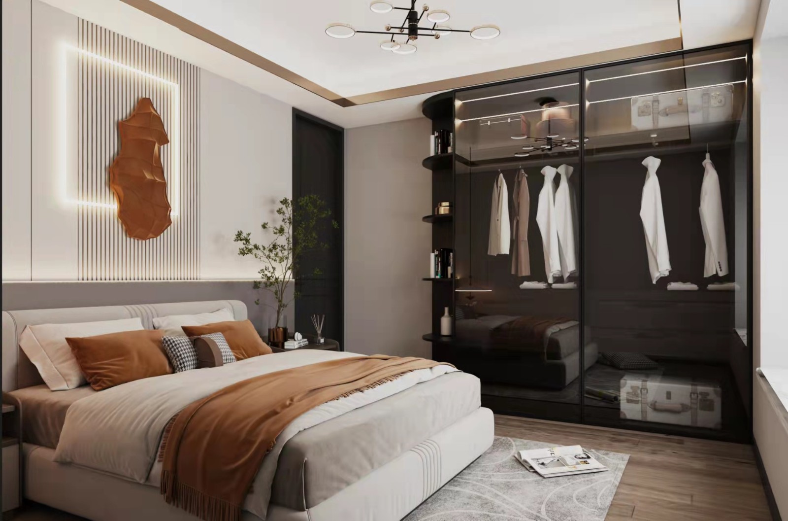 轻奢风格通过一些材料装饰,突显空间的奢华感