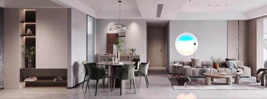 案例说明:以屋主喜爱的简约风为基调,黑白灰加以木色调剂,软硬装在温度质感上相互碰撞平衡,塑造温馨不失品质的居所。