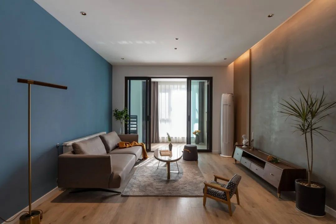 水泥漆客厅餐厅过道的融合同时又打破了传统的电视墙设计。