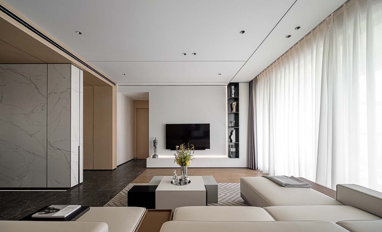 小隐于市,在喧嚣之外找寻真正的宁静。家作为喘息之地,规避华丽的外表,与简约质朴不期而遇。自然之感的底色铺设于客厅处,大量的木质背景调和出本真与自在,营造出悠然意境之感。