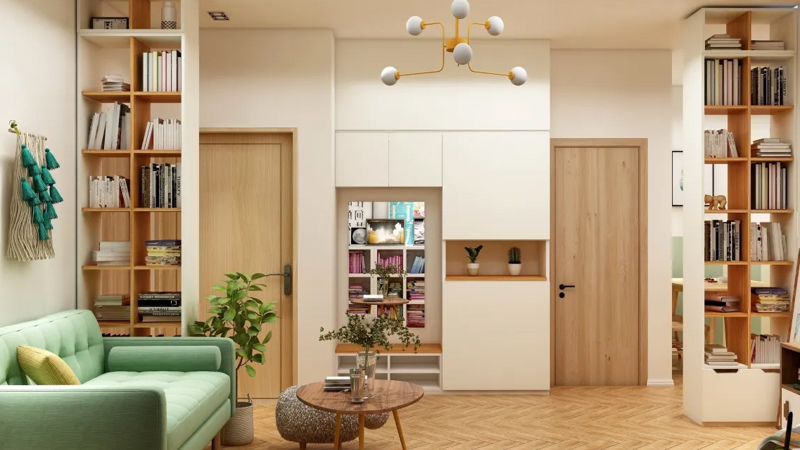 空间与空间之间应当是开放而非闭塞的,对于两个人的居住空间来讲,除了卧室需要静闭,其余都应是随意穿梭,以满足内在精神的自由度
