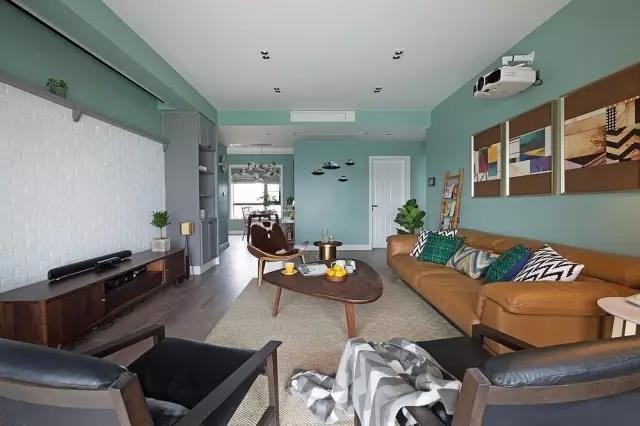 业主一家没有看电视的习惯,常用投影,所以客厅只做了造型简洁的文化石墙面。