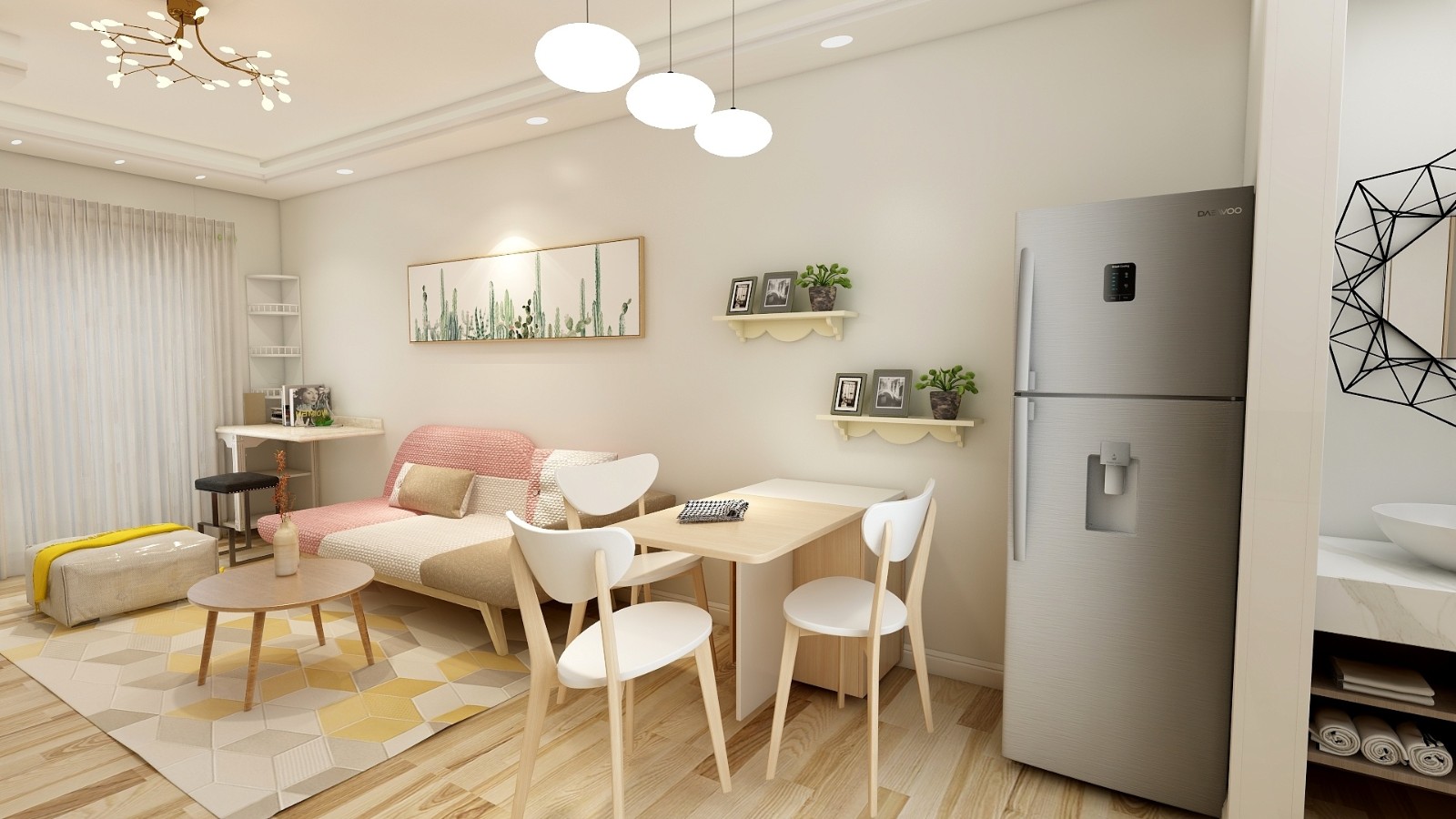 暖色调配上一抹粉色软装,温馨又不失新意。