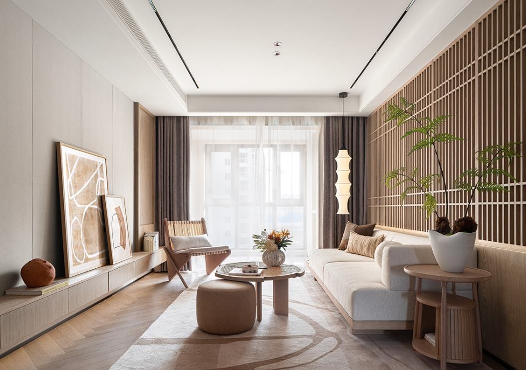 背景墙造型的变化增加整体的设计感,木色将 MUJI 风发挥到***,给人一种岁月静好的感觉。
