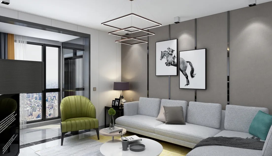 旋转电视的设计,既满足了餐厅区的需求,也满足了业主坐在沙发上也能看到电视。