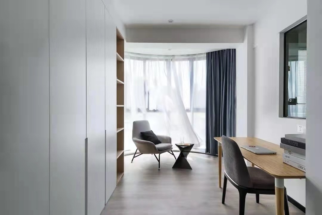 原始结构是一个圆弧的落地窗,且外面的风景也是特别的好,泡一杯茶,看一本书。静静享受着微风佛面的舒适感。