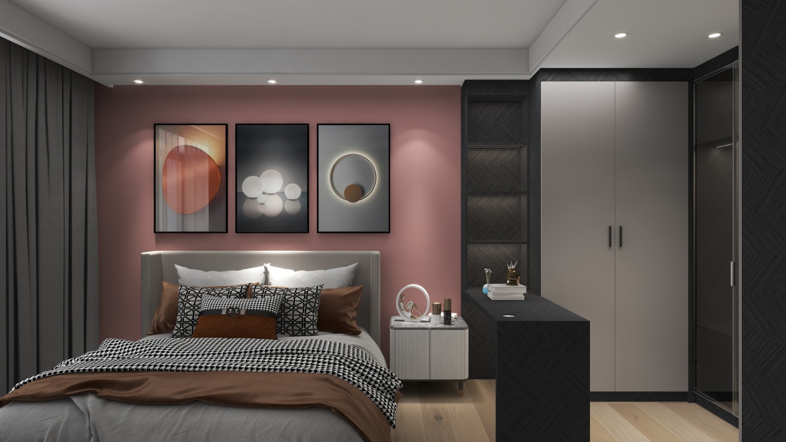 原户型为两居室二卫,后期根据业主实际需求,将主卧室卫生间更改为衣帽间。 同等的更改了次卧入口位置,增加了餐厅区域的空间率。