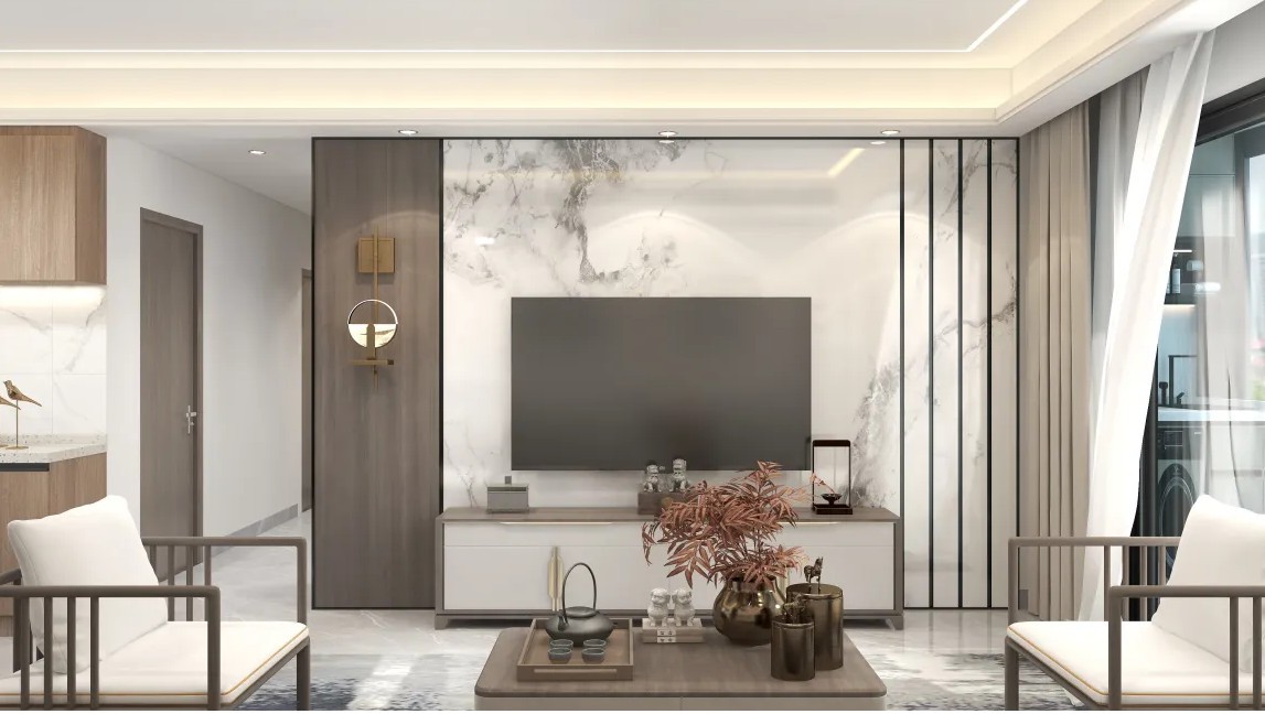 大理石背景加胡桃木点缀大气典雅