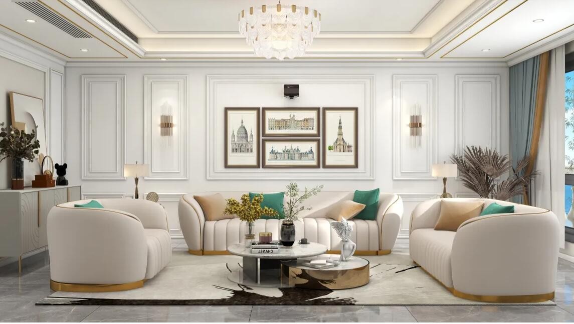 背景墙线条围边镶金色线条彰显贵族