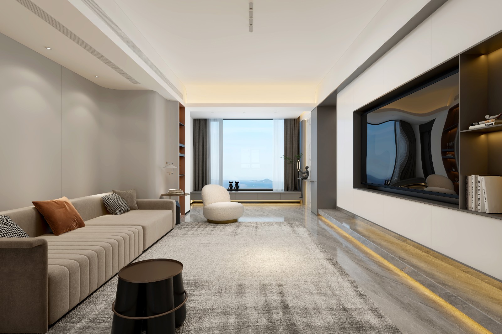 我们一直强调家的***感和舒适度 ,当下的生活状态可能会随时变化 未来的考量也必须在内 于是,客厅呈完全敞开的状态 ,让这个空间里的家人可以轻松、自由的互动,***限度的保证未来生活的可变性