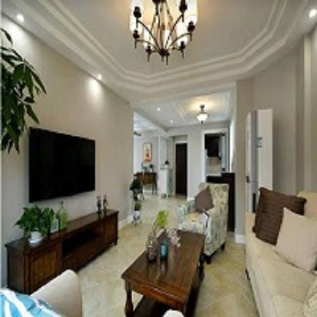 简洁明快的客厅台阶上的吊顶给人充满遐想的空间存在感,沙发的选择赋予了客厅鲜明的色彩感卧室线条的勾勒壁灯的点缀衬托出温馨浪漫与舒适