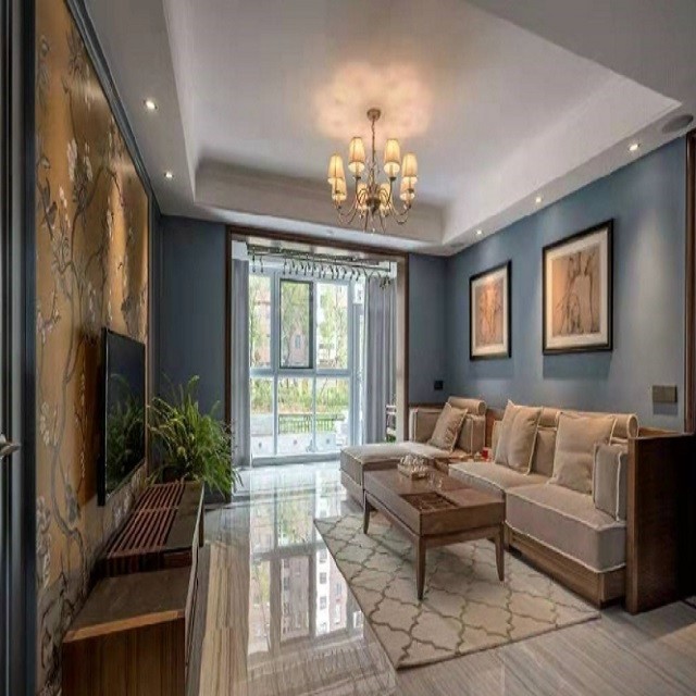 玄关墙面的蓝色与亮色的装饰画对比显得格外亮丽客厅的色彩与文案呼应着整个方案的风格透过玄关看向客厅地面的铺贴加入一点变化男孩房活泼可爱增加了学习与休闲的空间
