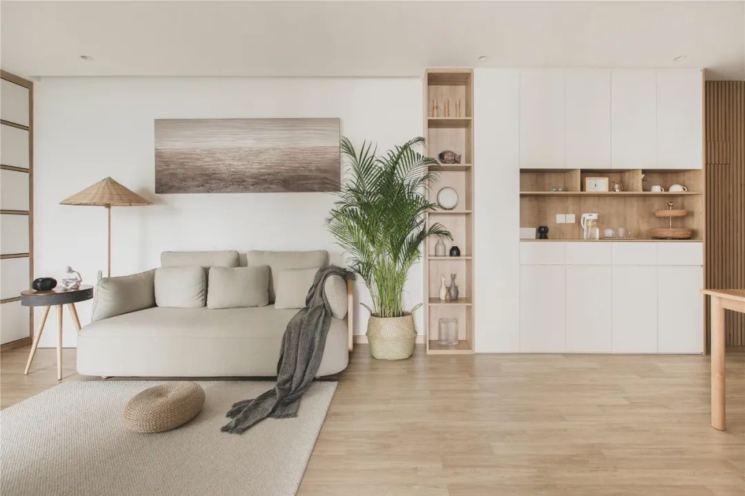 沙发区搭配大型绿植,呈现出的清新基调,给人一种放松舒适的空间感。