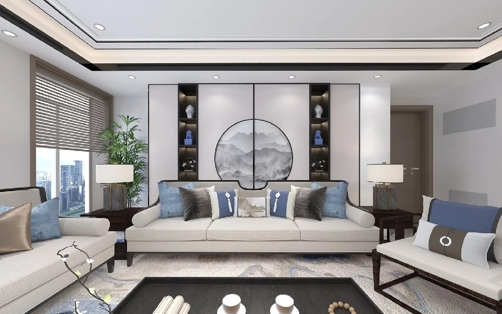 客户是一对中年夫妻,有两个孩子一儿一女。客户对生活很有经验,要求既要有相对的独立格局,又要有一定的相互联系性,房屋必须舒适精致。所以设计师选择新中式风格为客户打造精致的家居,中式元素与现代材质的巧妙兼柔。