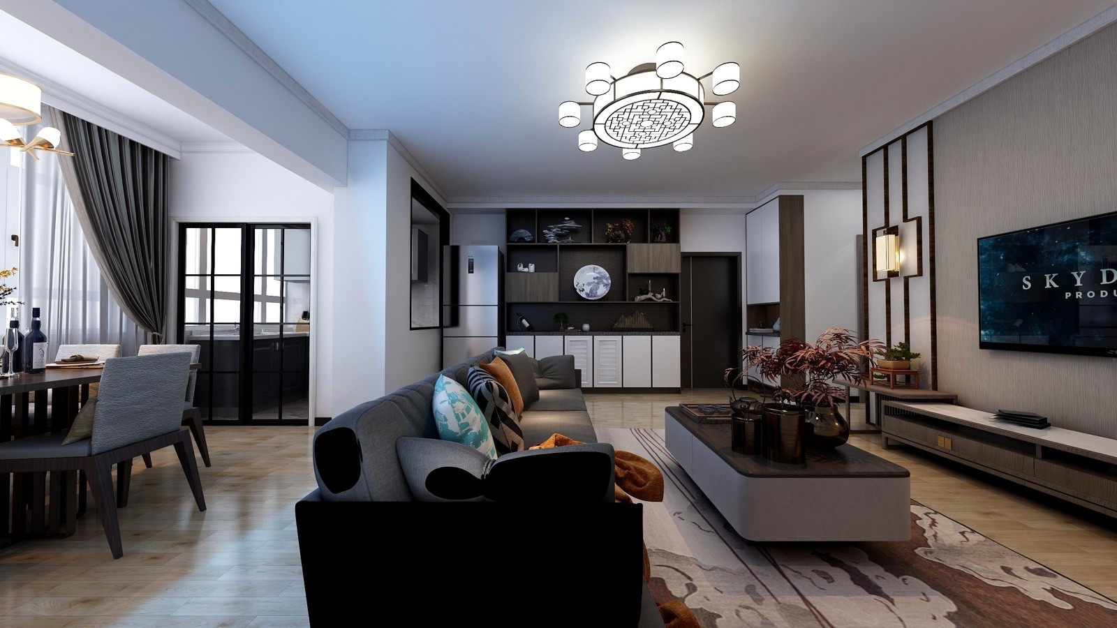 客厅,风格以新中式为主,因是两老人,现代年青人的风格,所以还是以中规中矩为主,色彩以深木色为主